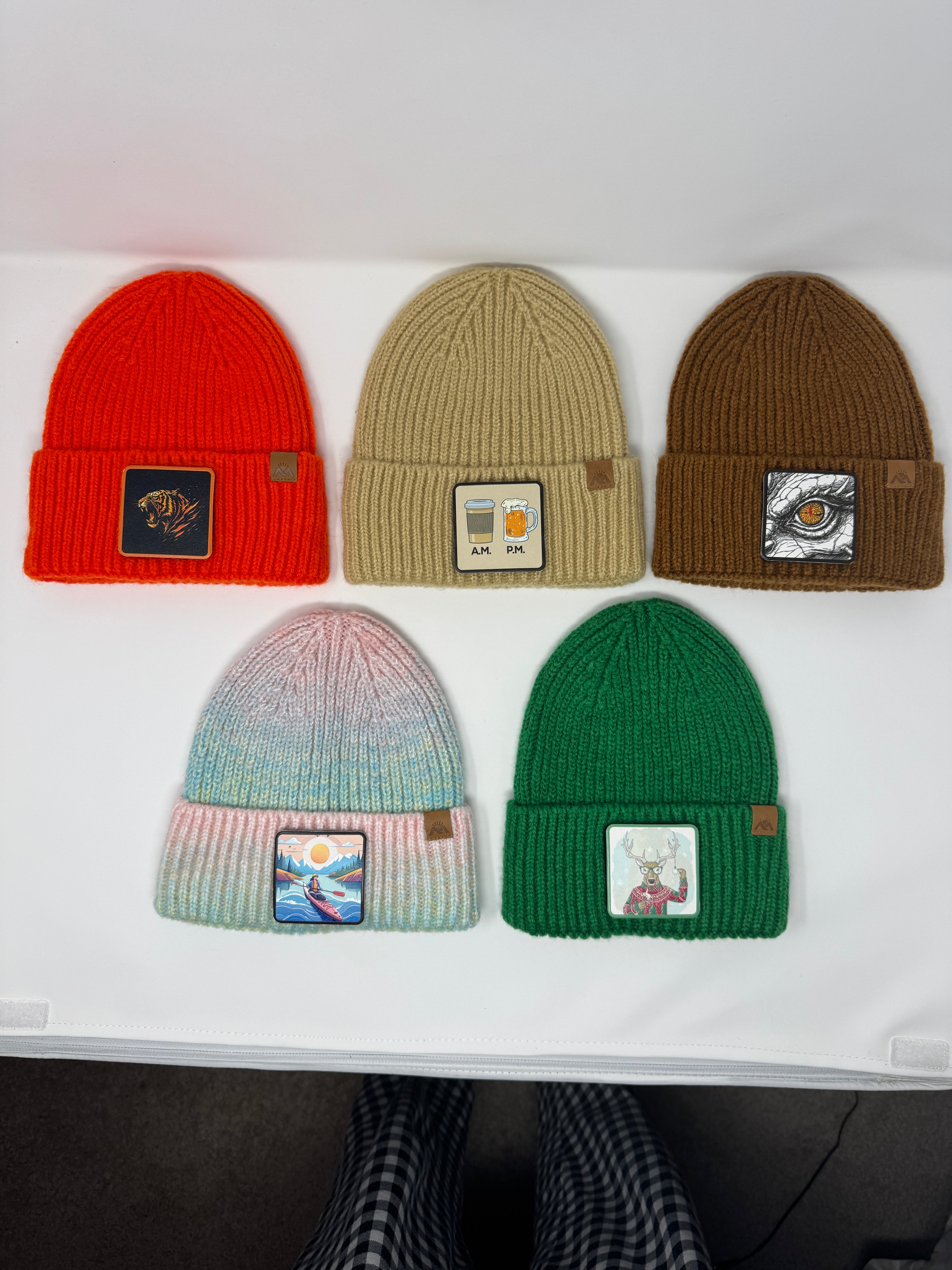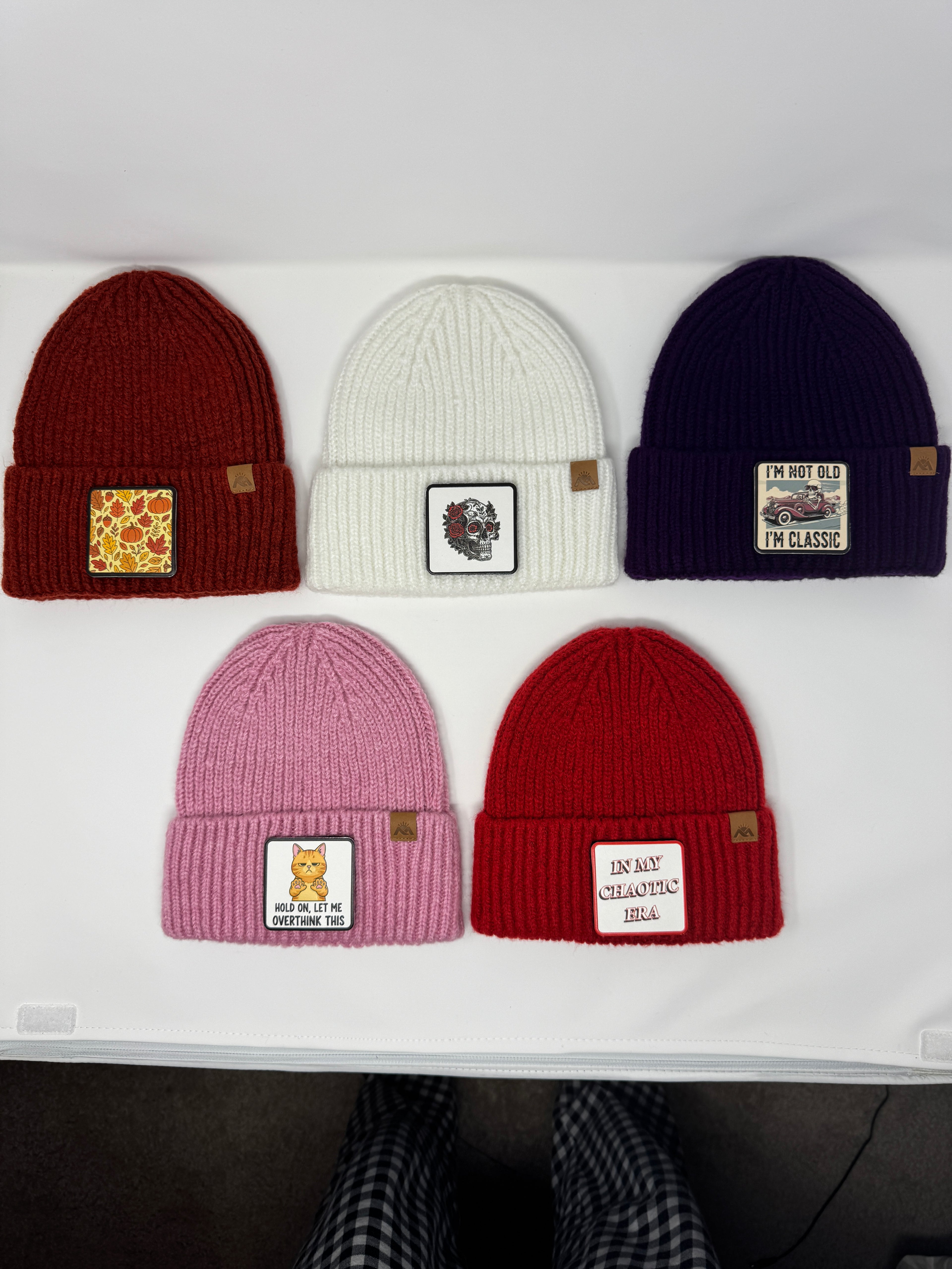 Autumn Vibes | Embossed Removable Fall Patch Beanie - Wool Blend, Soft, Warm, One Size Fits All