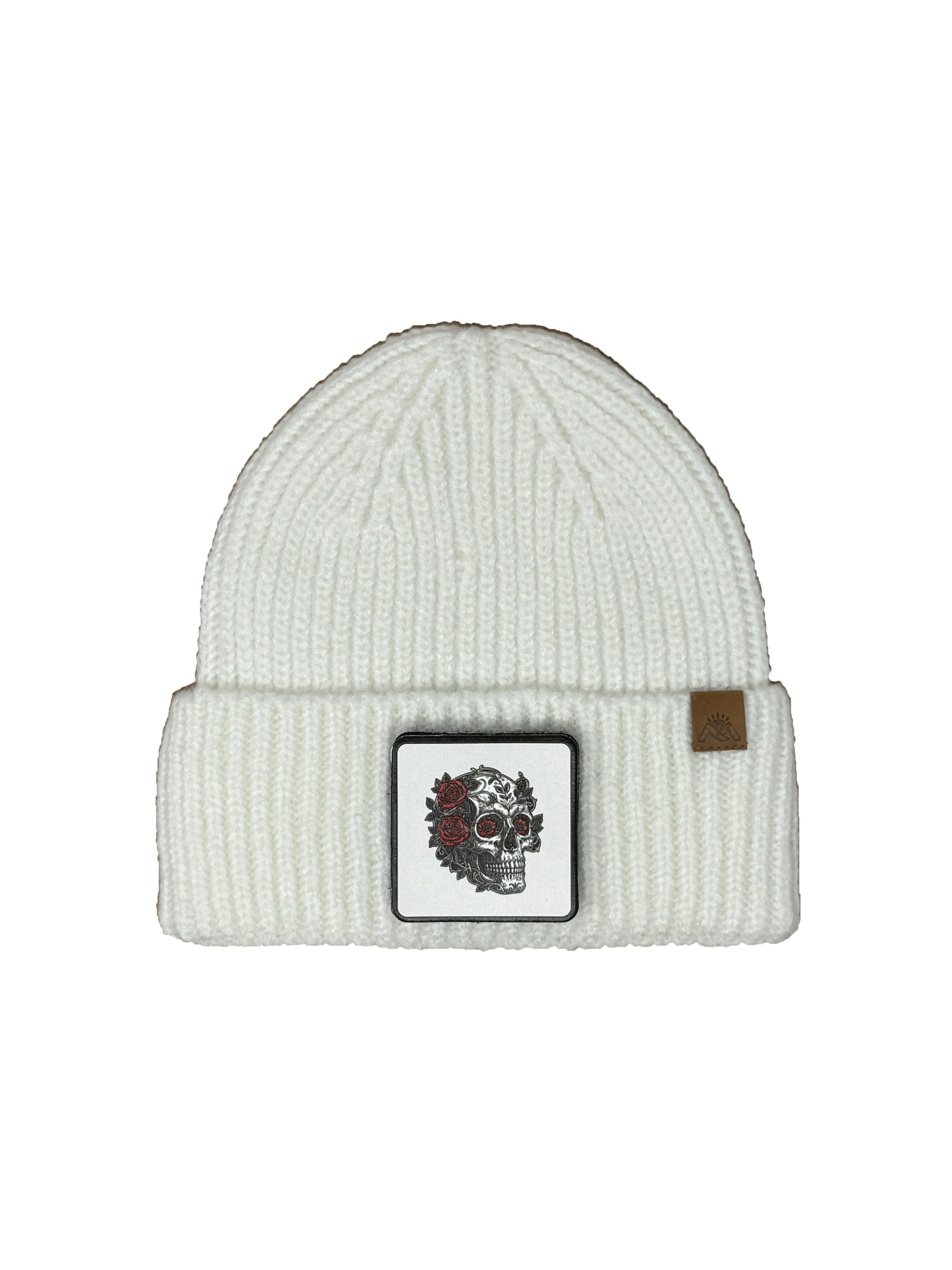 B&W Skull Patch Beanie | Soft Wool Blend with 3D Embossed Removable Patch