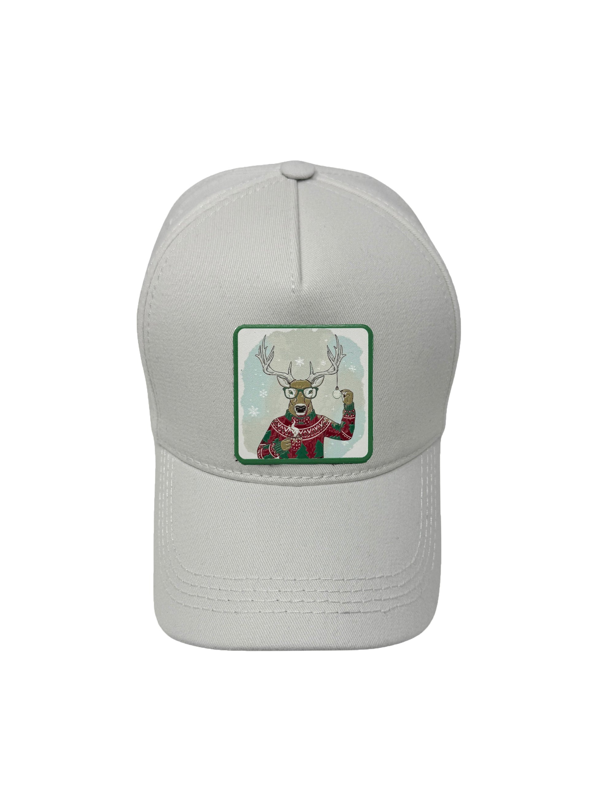 Christmas Reindeer | Embossed Removable Christmas Patch 5 Panel Baseball Hat – %100 Cotton, Adjustable Strapback, Curved Bill , One Size Fits Most