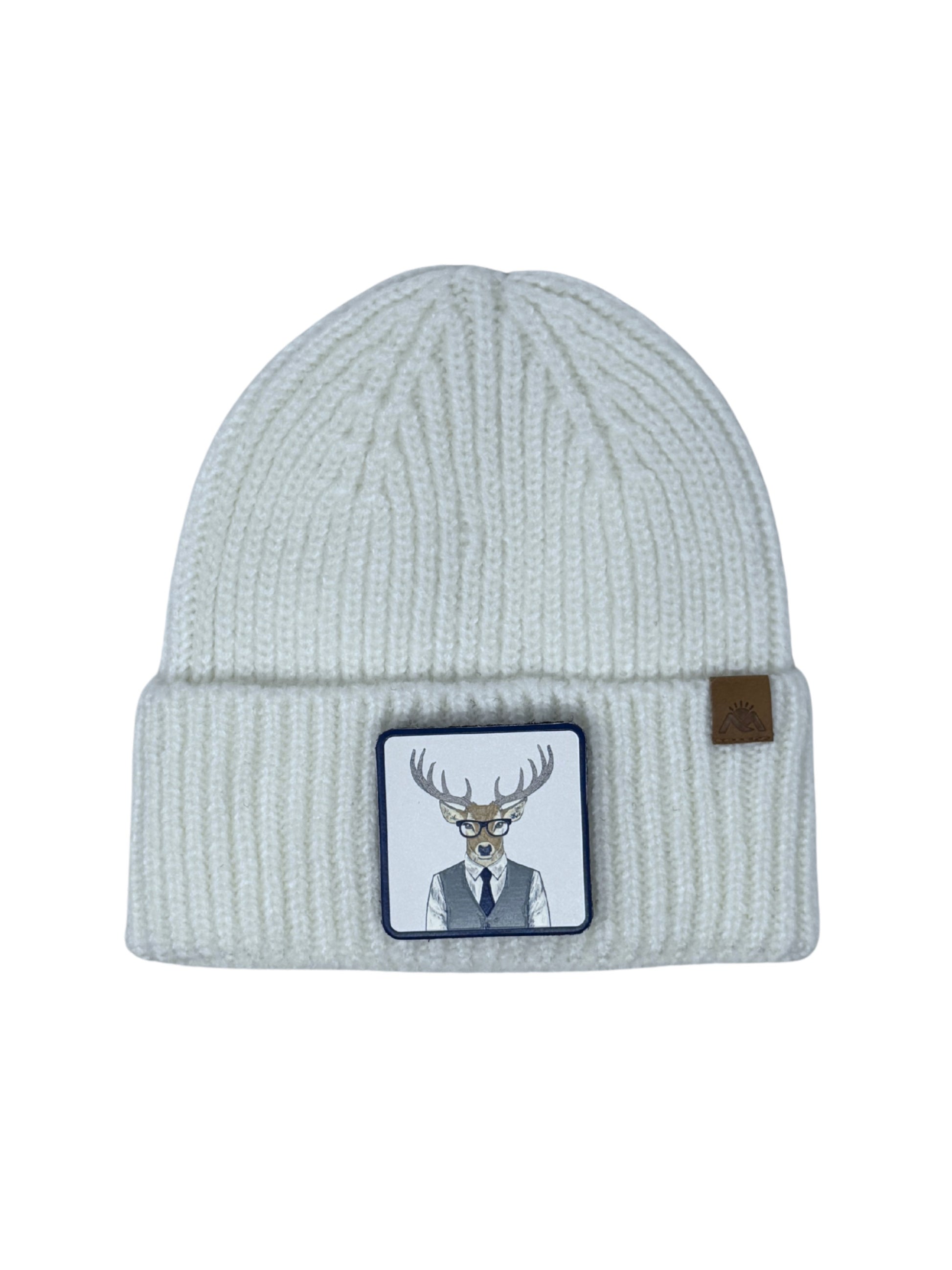 Corporate Reindeer | Embossed Removable Patch Beanie - Wool Blend, Soft, Warm, One Size Fits Most