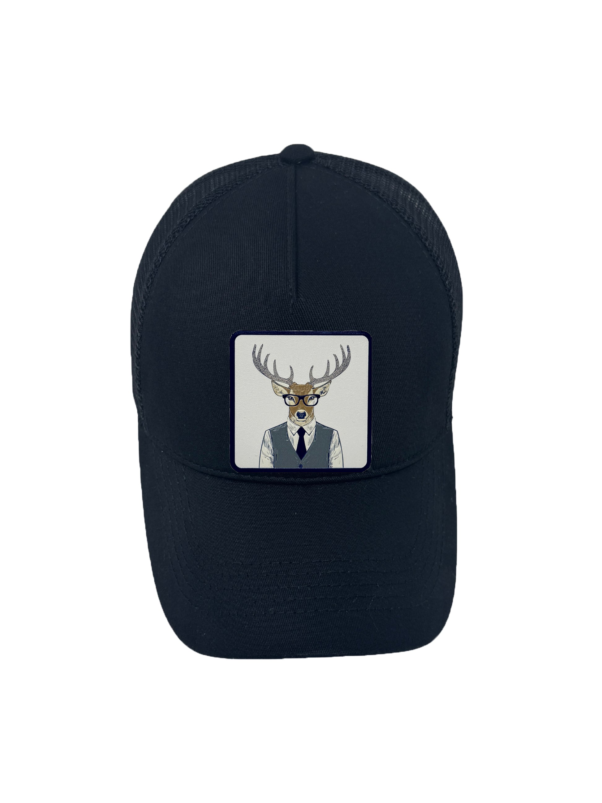 Corporate Reindeer | Embossed Removable Patch Trucker Hat – Adjustable Snapback, Breathable Mesh, One Size Fits Most