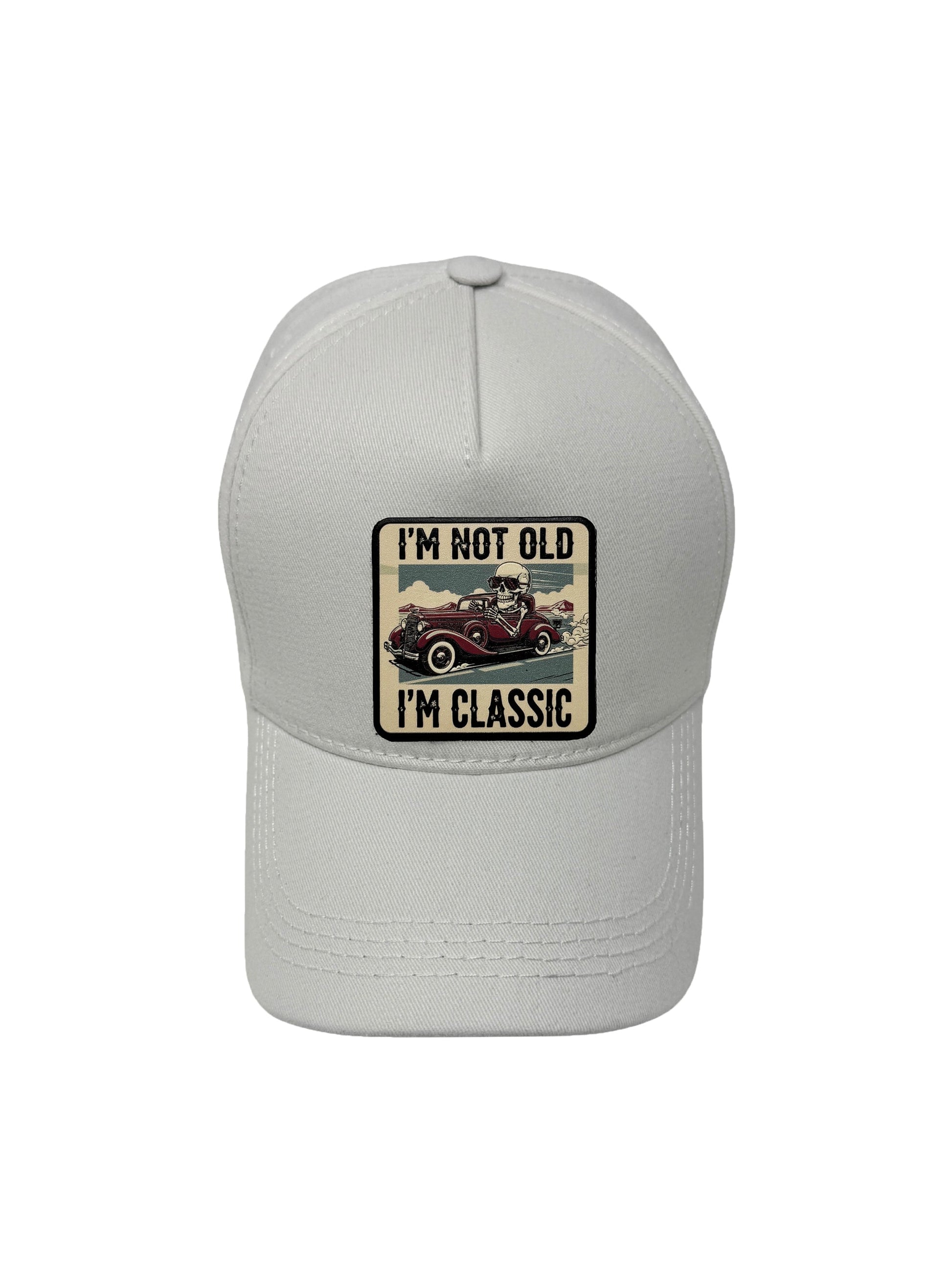 Celebrate timeless style with the I am Classic Baseball Hat, designed for vintage vibes and car lovers. Made from breathable 100% cotton, this 5-panel hat features a curved bill and sweat-wicking inner band to keep you cool and dry. The adjustable Strapback ensures a perfect fit for all.
