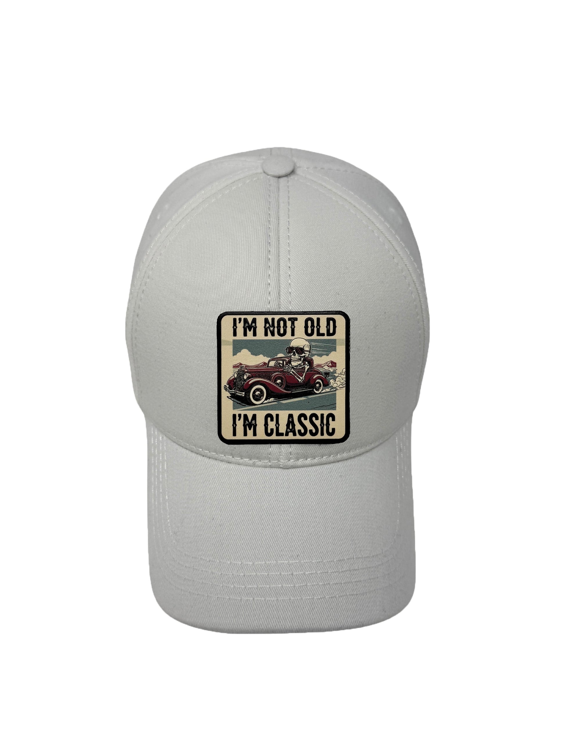 Celebrate timeless style with the I am Classic Baseball Hat, designed for vintage vibes and car lovers. Made from breathable 100% cotton, this 6-panel hat features a curved bill and sweat-wicking inner band to keep you cool and dry. The adjustable Strapback ensures a perfect fit for all.