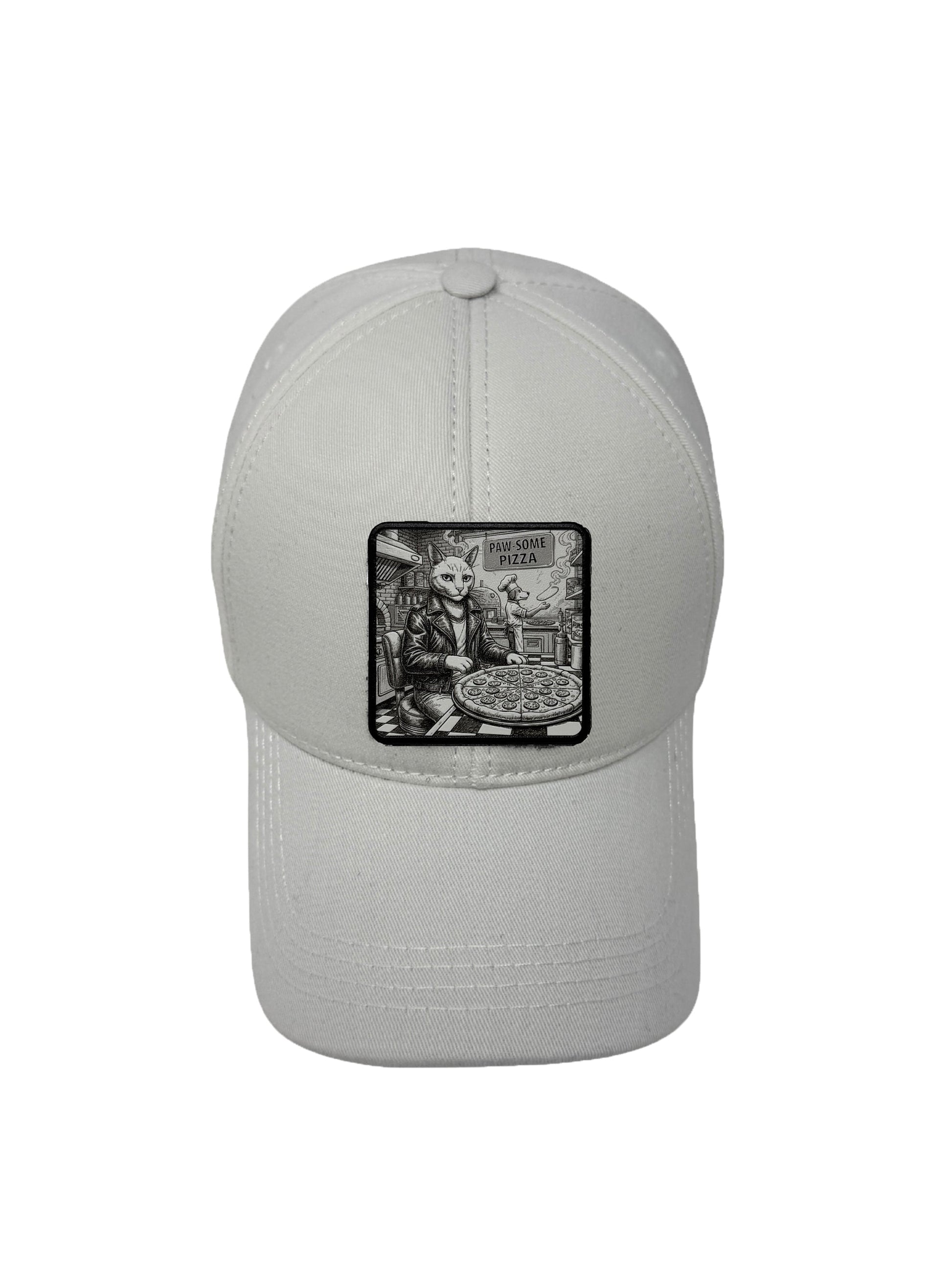 Paw-some Pizza | Embossed Removable Patch 6 Panel Baseball Hat – %100 Cotton, Adjustable Strapback, Curved Bill , One Size Fits Most