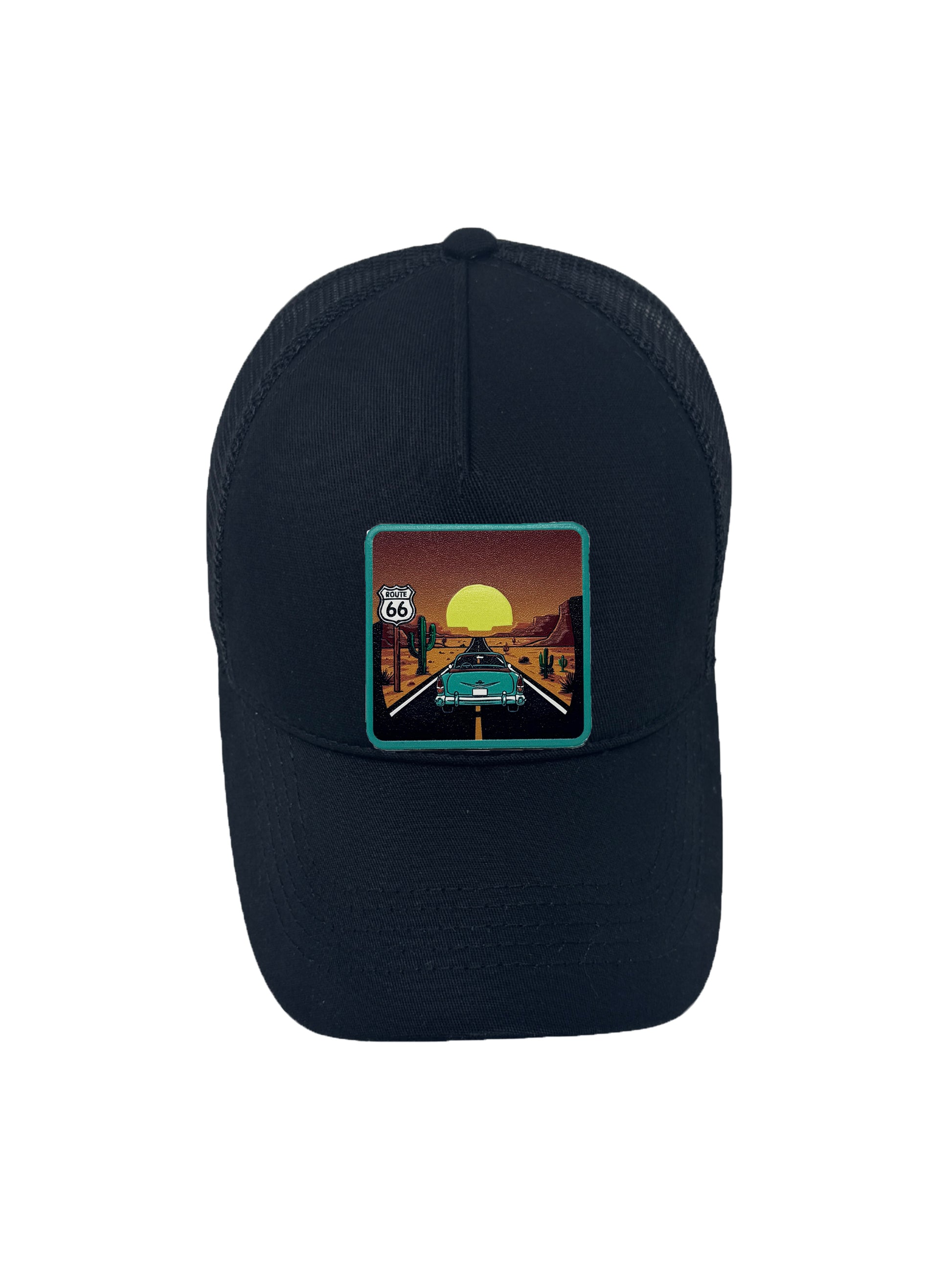 Route 66 | Embossed Removable Patch Trucker Hat – Adjustable Snapback, Breathable Mesh, One Size Fits Most